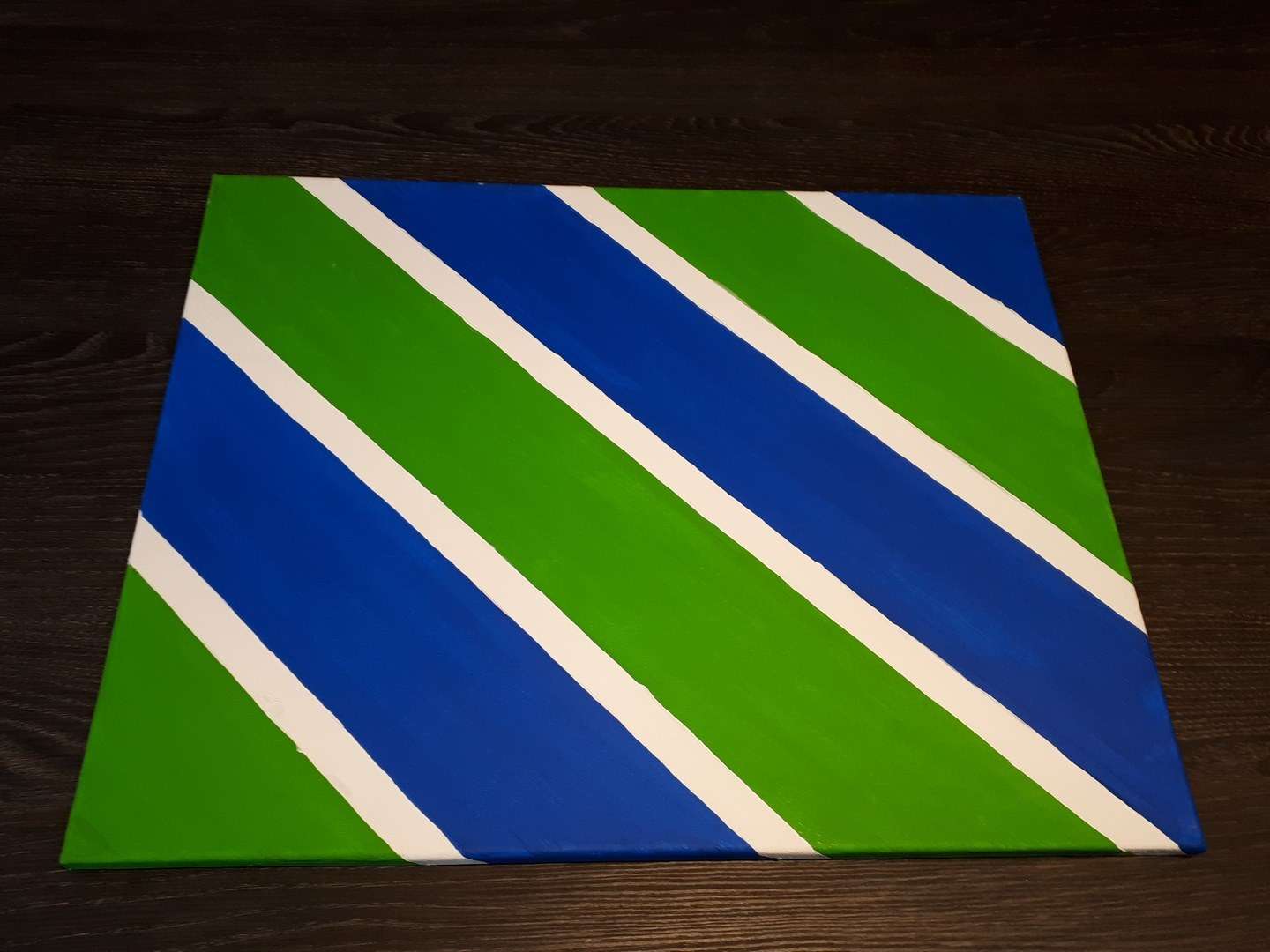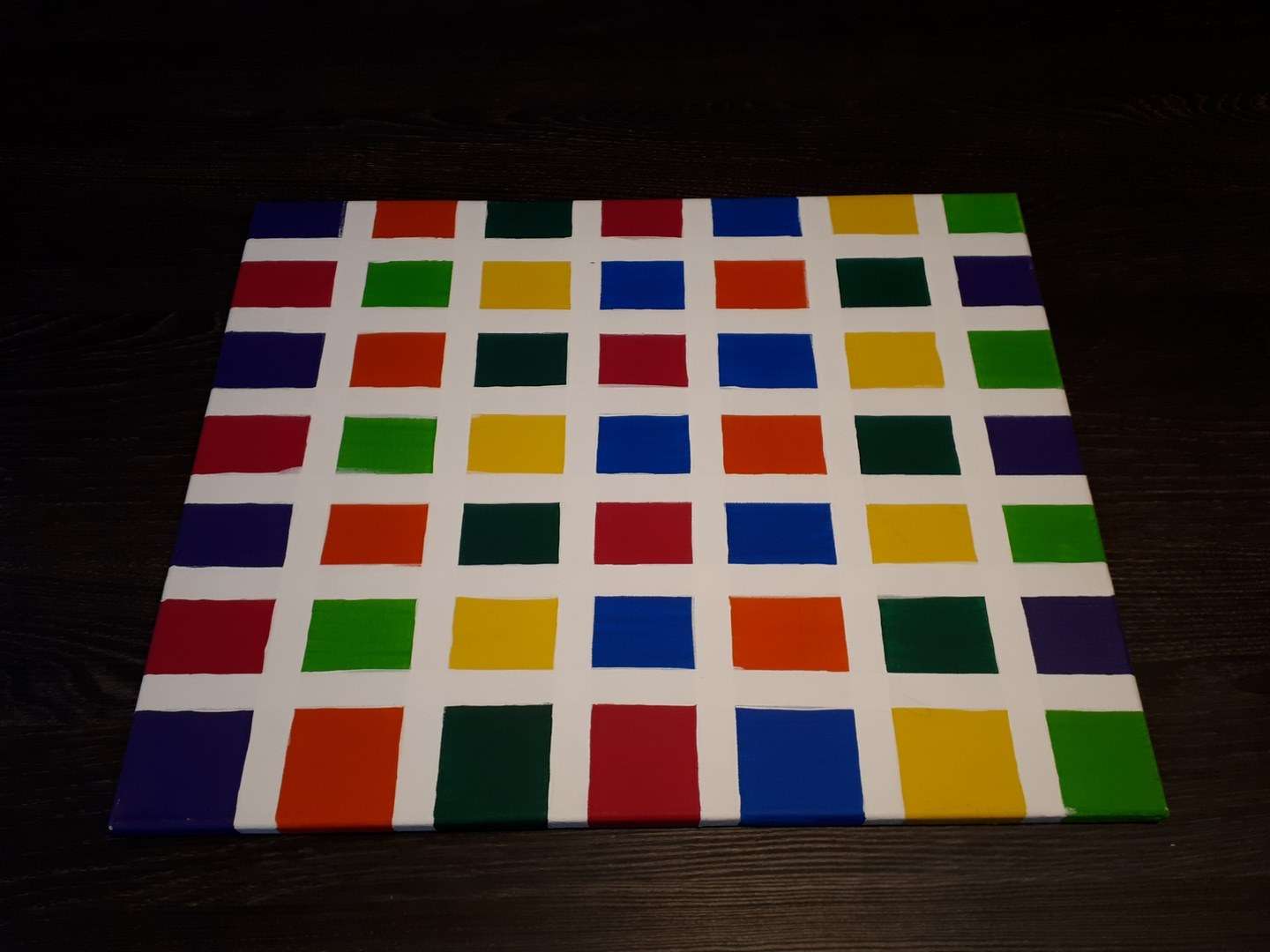 Vous remplirez les vides de couleurs de votre choix. Une fois la peinture sèche, vous retirerez les bandes de Tessa et vous aurez alors devant vous votre œuvre unique que vous serez fier d’exposer aux yeux de tous !