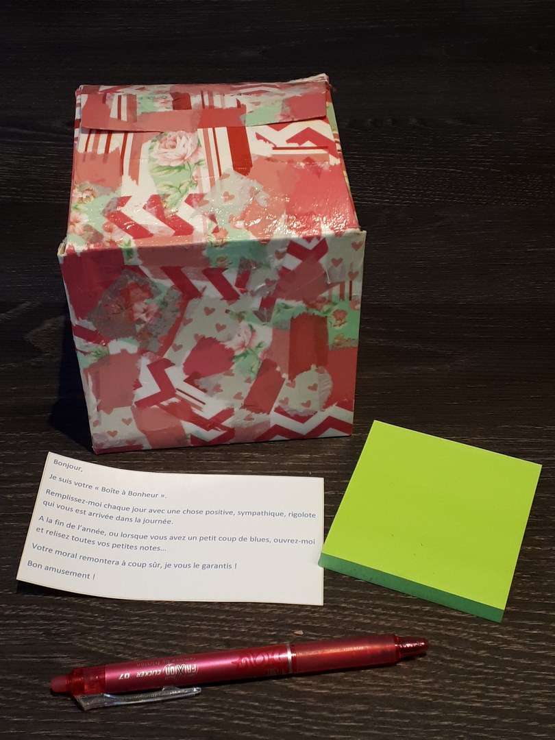 Je vous guiderai pour la technique et vous permettrai de créer votre boîte à bonheur à VOTRE image.