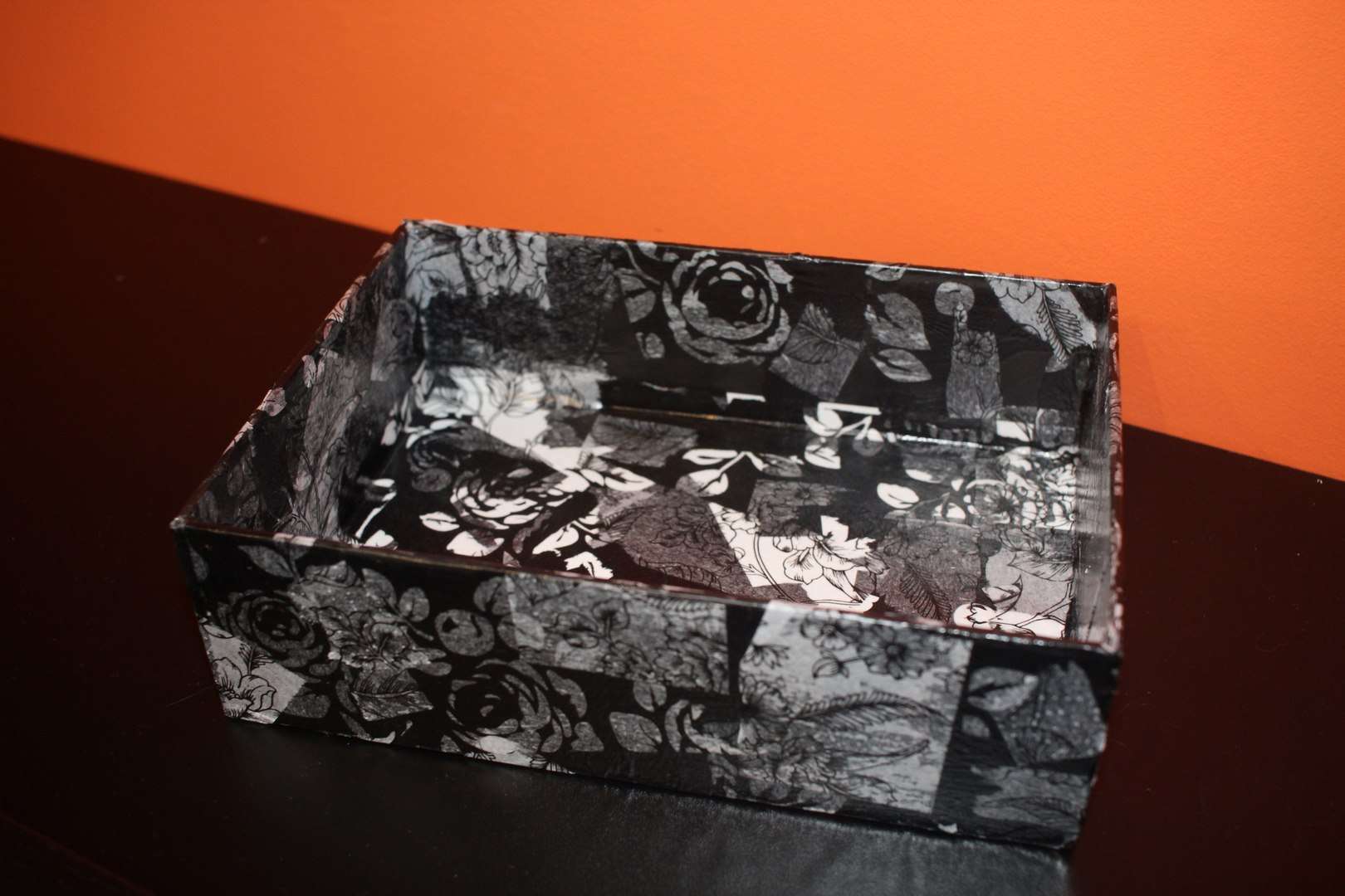 Vous aurez le choix entre une boîte à mouchoirs, une farde de rangements cartonnées ou d'autres éléments divers au gré des récupérations que l'on peut faire au fil de l'année...