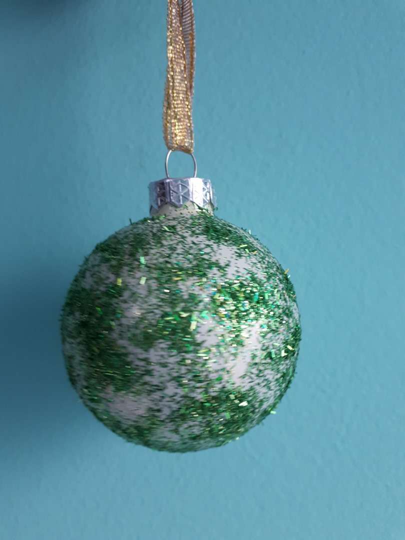 Vous allez prendre une boule de Noël en verre que vous allez décorer de l’intérieur et de l’extérieur avec des paillettes, du glitter, de la neige diamant… selon vos envies.